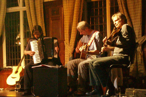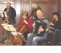 One of Quebec�s leading fiddle players, Claudine's unique and dynamic style is matched with her enthusiasm and passion for traditional Quebecoise music and she is much in demand at workshops and festivals in Canada and North America. Claudine is also a member of the superb contra-dance band Tidal Wave! John Dipper is a respected and established performer, teacher and composer, his unique playing style, and his traditionally-spirited compositions convey a deep understanding and passion for the indigenous culture of England. John is a founder member of the English Acoustic Collective with Chris Wood and Robert Harbron. He is also part of Methera Quartet, Patterson Jordan Dipper and No Man's Band, accompanying Martyn Wyndham-Read. He also has his own John Dipper Band. For more details go to www.johndipper.co.uk. On Thursday 9th October John returns to the area with the Methera String Quartet performing at Theatr Mwldan in Cardigan. Slightly nearer TASC territory is a performance of Christmas Champions featuring storyteller Hugh Lupton as well as John Dipper,Chris Wood and Rob Harbron at the Aberystwyth Arts Centre on December 10th.click here for more details. Did you miss . . . THIS TWELFTH NIGHT WAS BETTER THAN EVER! LLANDINAM Saturday Jan 5th 08 The evening surpassed all our expectations. From the first notes of music in the church, to the final galloping dances it was a triumph.