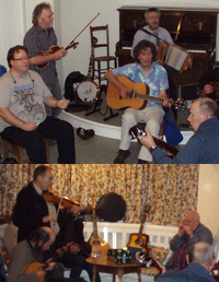 And on the same evening we welcomed back Harriet Earis whose skill on the harp has to be seen (and heard) to be believed. As ever, the Llandinam Village Band got the evening off to a good star, and Rees added some memorable touches. It was a splendid evening. FOLK CLUB RETURNS with AMERICAN NIGHT! The Folk Club returned with a bang with the visit of the Whiskey River Boys on Saturday November 6th. ![]() With the Llandinam Village Band for starters and lively support acts this was a great start to our autumn programme. ![]() BEULAH CEILIDH Our short series of workshops in Beulah as part of the Beulah Festival culminated in a ceilidh on Friday October 8th. A good time was had by all. Pictured above is part of the band more pictures. TWELFTH NIGHT CANCELLED With the continuing arctic weather and with the significant distances that many of our contributors would have had to travel we have reluctantly abandoned this event. Click here for a copy of the programme we would have brought you. As you will see a lot of hard work had gone into the preparation. Thanks to all those who had intended to contribute.