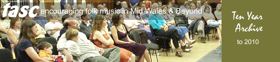 MAKING YOUR WORKSHOPS WORK, WORKED! Many of us have been asked to take workshops, but have we been trained? Are we going about it the best way? How do others prepare and deliver successful workshops.These were the issues raised at Llandinam on Saturday October 23rd. The one day course was to help planning and delivering successful workshops, whether as part of Community Projects, in schools or at festivals. ![]() The course was led by the inspirational Laurel Swift (above) of Morris Offspring fame (and much, much more). Other tutors included Blue MacAskill a visual artist who has worked with Ceri and Julie of Fernhill, and who had a long residency at the National Library in Aberystwyth working with schools, and Rick Wilson who has worked on rhythm and percussion in projects from primary school to film. There was also information on the state of play for music in schools from Powys Music Co-Ordinator Helen Wilding-Smith. We are pleased to say that the event was well attended and well received.There will be a second event in the Spring and these workshops are supported by Powys County Council and the Arts Council of Wales. LIVE MUSIC PETITION Along with many others TASC responded to the consultation on the lamentable Licensing Act: click here to download a copy of our response. Phil Little of Live Music Forum who are spearheading opposition to the bill wrote "Your submission is fantastic. It says it all better than I ever have done." Thanks, Phil. The General Election has brought a temporary halt to the campaign, but with all three parties accepting the need for revision in some form or other then good sense might prevail eventually. Latest developments along with responses to the consultation will be found on the Live Music Forum site. FOLK CLUB TASC's newest venture is to bring you the flavour of a traditional folk club upstairs in the Girls Parlour at Llandinam Village Hall. The artists have been chosen by Rees Wesson (see left). We kicked off with a splendid evening featuring Pete Coe. Llandinam Village Hall Sat 5th Dec 7.30pm With supporting musicians and a friendly relaxed atmosphere these promise to be delightful and memorable evenings. LLANDINAM MEETS LLANDOVERY LLANWRDA Friday 21st Nov '08 Thanks to the lively LLandovery Dance Club the Severn Suite dances had an airing at Llanwrda Hall. ![]() Following earlier workshops in the dances with Pam Knight and on the tunes with Pete Damsell the dances were part of an evening Twmpath. Music was provided by the Much Ado band with caller Anne Hill.